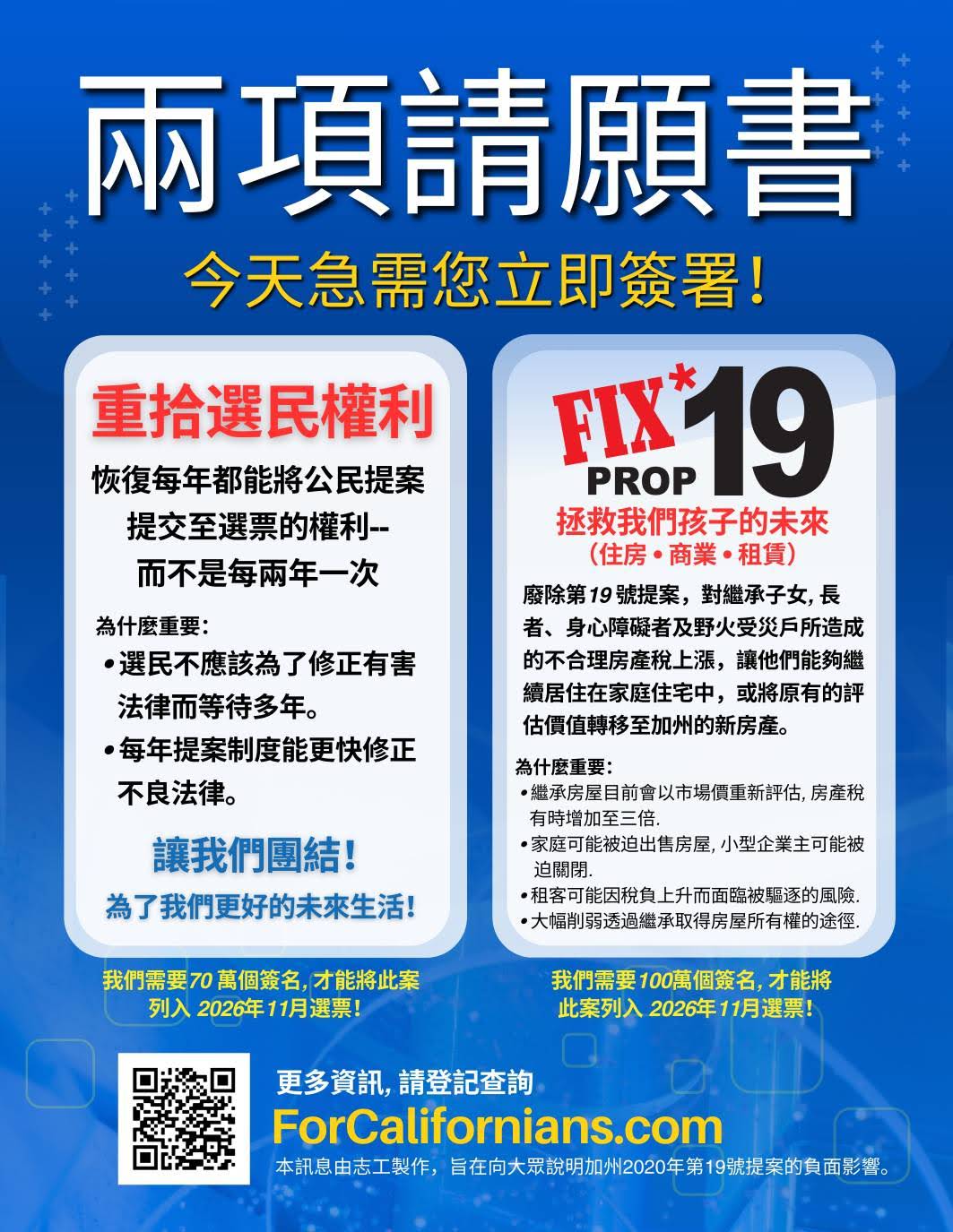 Please sign BOTH petitions at ForCalifornians.com/petition petition to #FixProp19 to Save Our Children’s Future (By Repeal The Death Tax) and Reclaim Voters’ Rights.